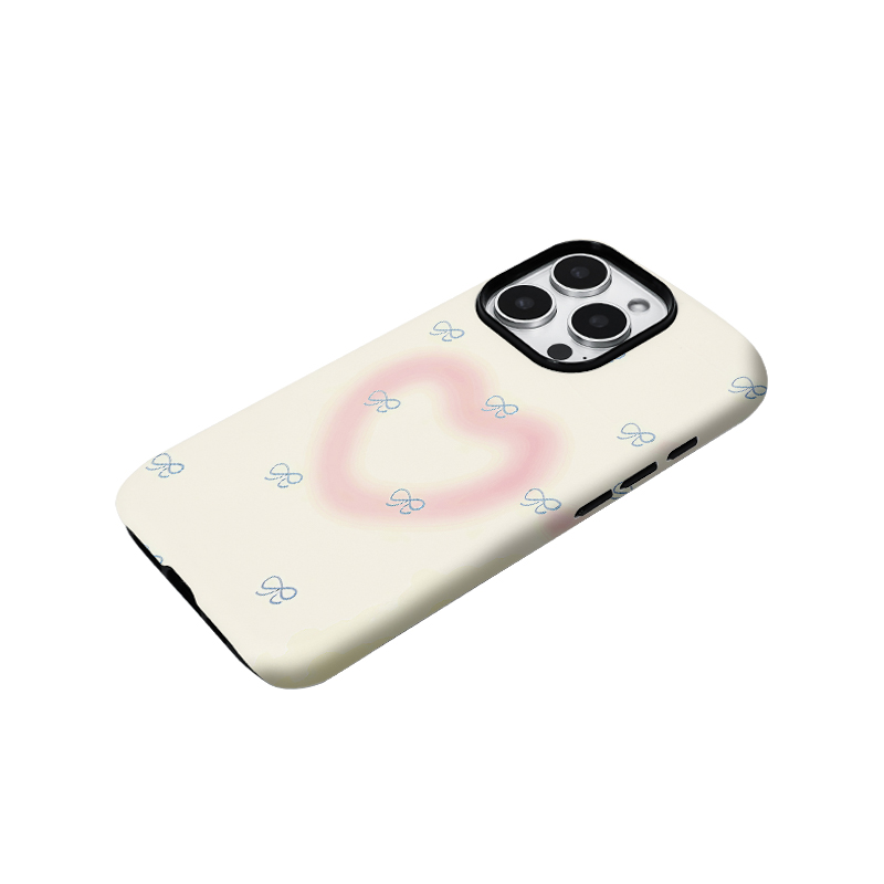 蓝色蝴蝶结簇拥的粉心菲林二合一手机壳适用苹果17nova14华为p70mate60小米15opporen14ovivo荣耀300iPhone16