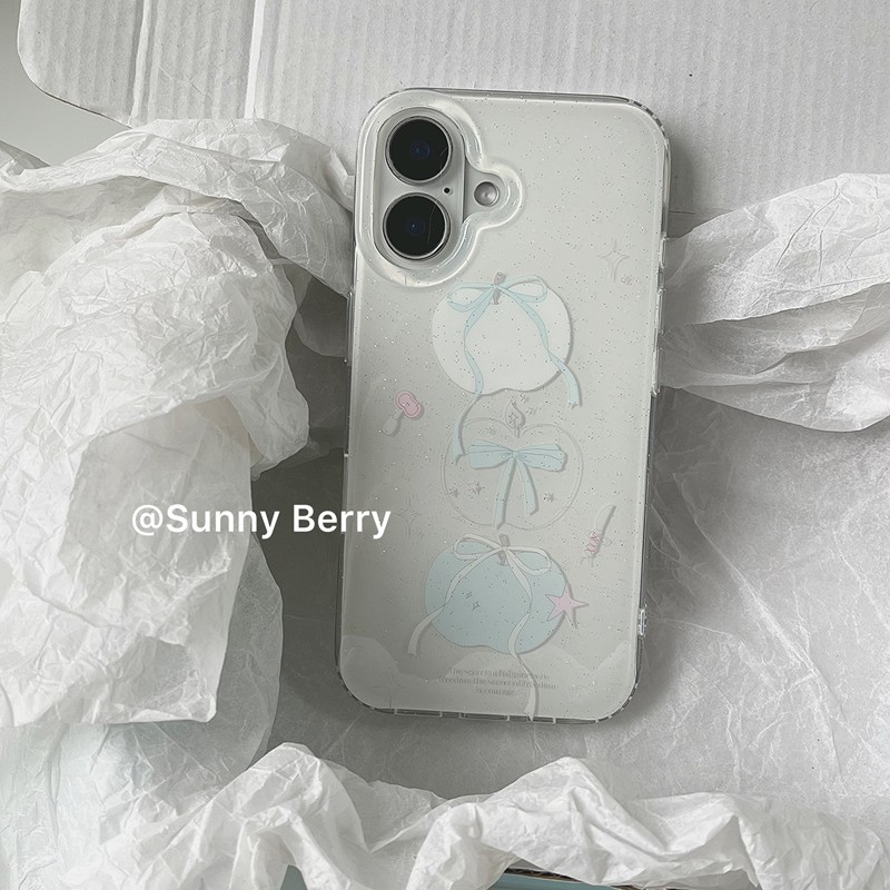 向日的浆果ins韩系小众温柔清甜蓝白苹果蝴蝶结少女可爱适用苹果16pro手机壳iphone15promax/14/13保护套防摔