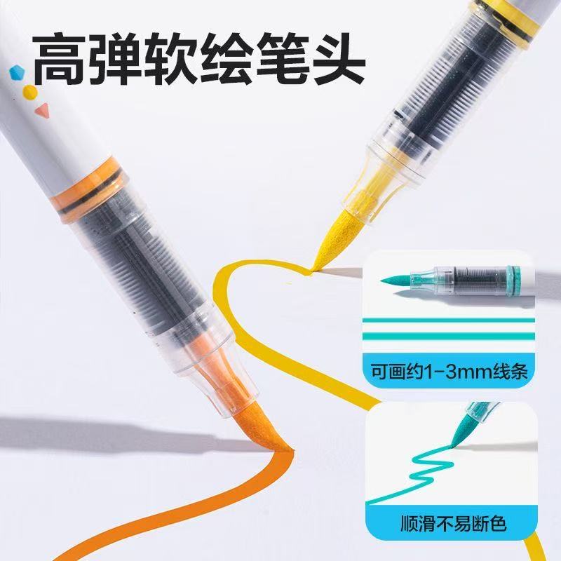 软硬双头丙烯马克笔不透色可叠色软头水彩笔初中生小学生美术专用儿童无毒可水洗画画笔48色笔芯彩色笔36细头