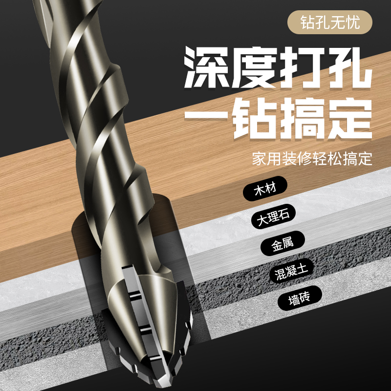四刃锯齿偏心钻头瓷砖混凝土打孔专用超硬钨钢电钻高硬度干打霸王