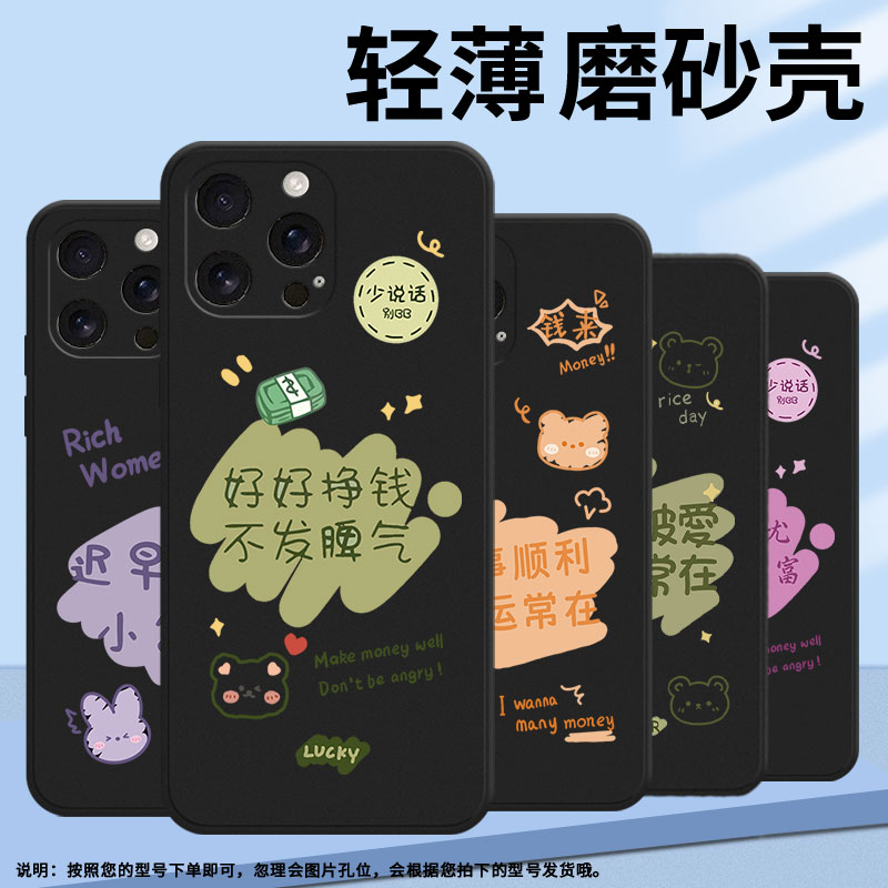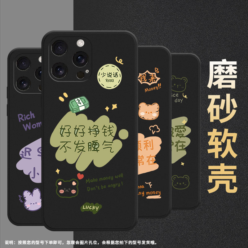 适用iPhone苹果16pro手机壳16promax/se4/16e新款A3294挂绳好好挣钱何以解忧男女款Lucky钱来防摔发财被爱熊