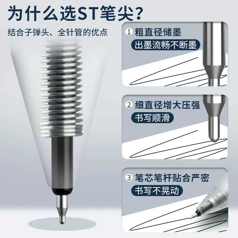 ST刷题笔高颜值按动中性笔圆珠笔黑色水笔小学生专用考试0.5速干碳素笔水性黑笔按压式做笔记签字笔非按斤卖