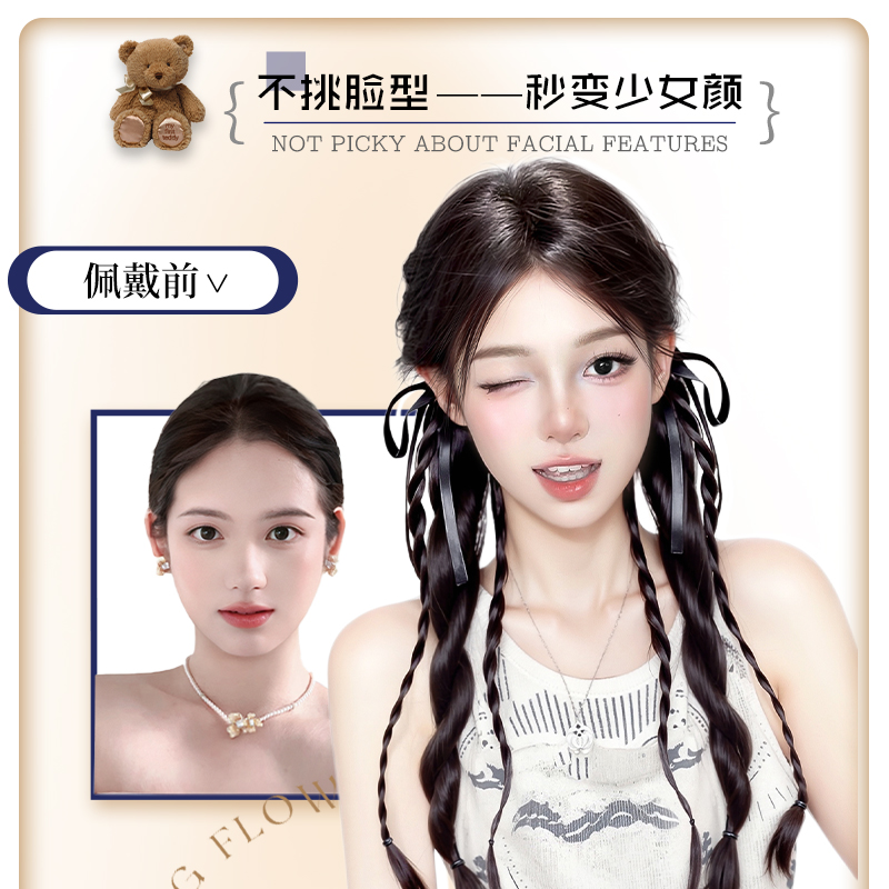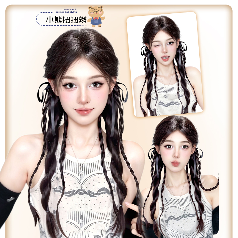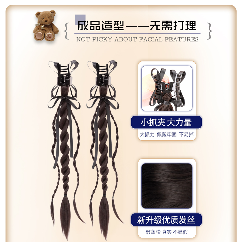 假发辫子女马尾抓夹式双麻花小熊扭扭辫自然仿真新中式假发辫马尾