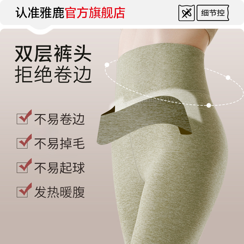 雅鹿秋裤女士德绒发热羊绒蚕丝高腰打底内穿2025冬季无痕保暖线裤