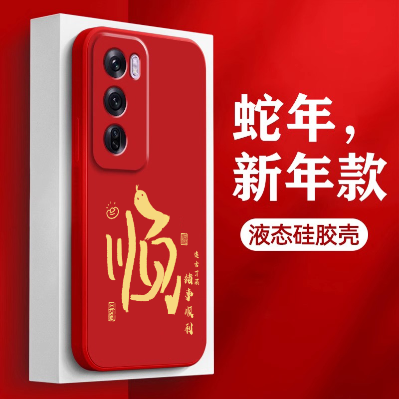 蛇来运转适用opporeno13手机壳reno12pro新年款reno11pro液态硅胶reno10全包9挂绳findx8/7本命红色por保护套