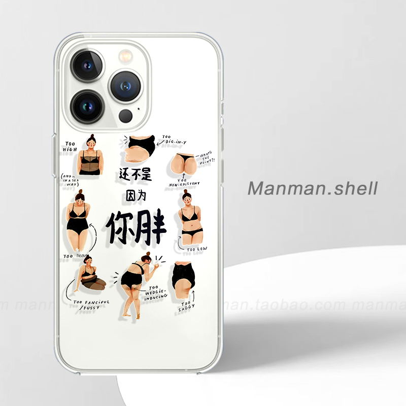 创意插画因为你胖适用华为Mate70苹果16pro励志小米15vivoX200减肥荣耀300红米K70P一加13OPPOK12漫漫手机壳