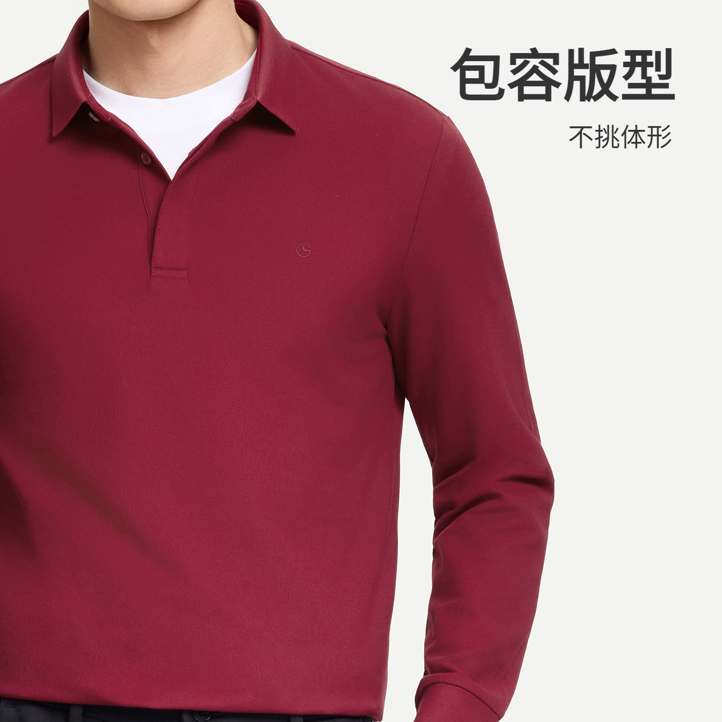 【磨毛】金利来秋冬新款男红色长袖Polo衫蓄热底磨毛商务T恤男士