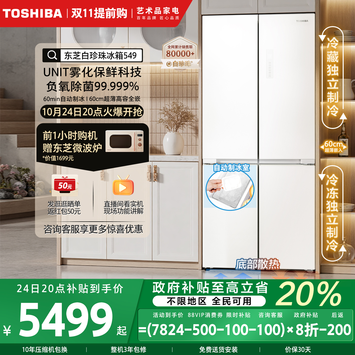 东芝白珍珠549零嵌入十字门双系统一级能效家用制冰冰箱以旧换新