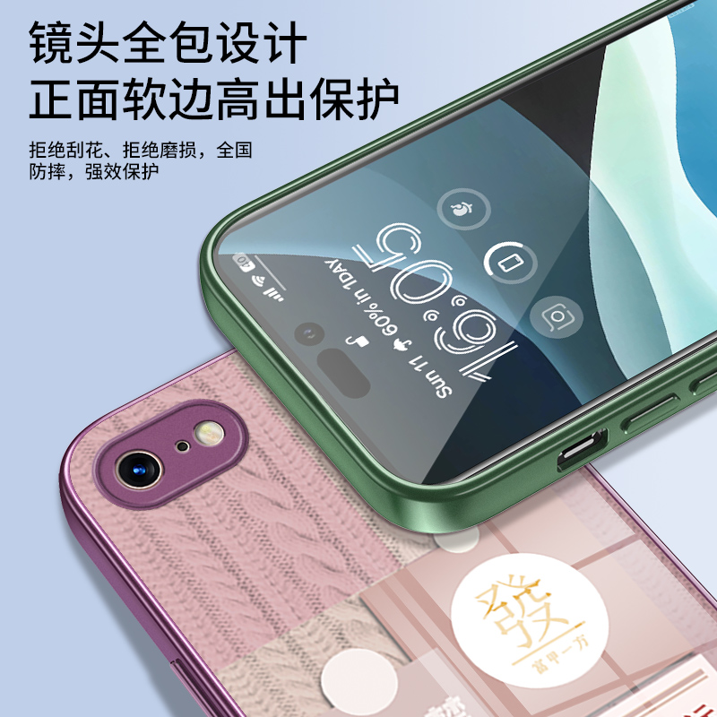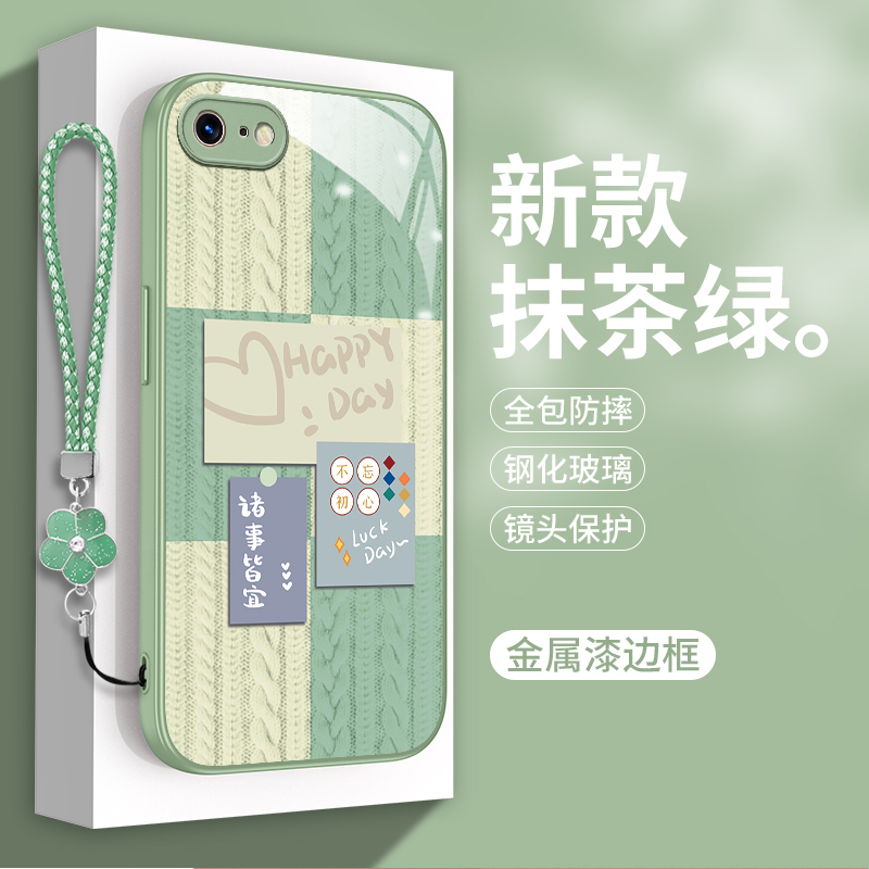 适用苹果8Plus手机壳新款iphone7puls玻璃iphoneSE3三代带挂绳SE2二代全包i8硅胶i7防摔ip七八女款P保护套了