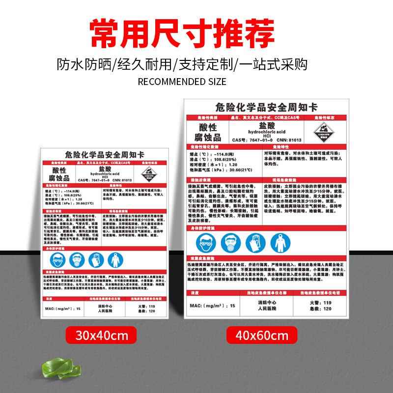 危险化学品安全周知卡危化品物质危害告知卡盐酸 硫酸 硝酸 液碱