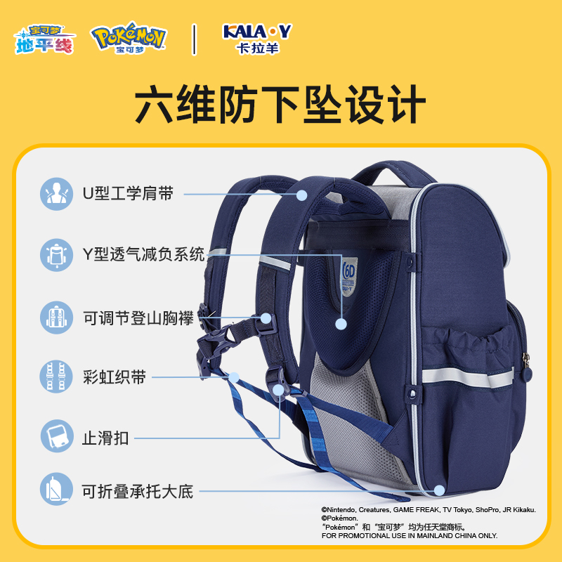 【宝可梦联名款】卡拉羊大嘴书包男1-4-6年级小学生减负防下坠女