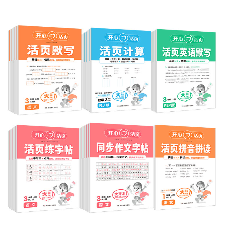 2025秋开心活页默写计算练字帖一二三四五六年级上下册语文数学英语同步练习口算专项训练本看拼音写词语纸冀教版苏教版竖式六三制