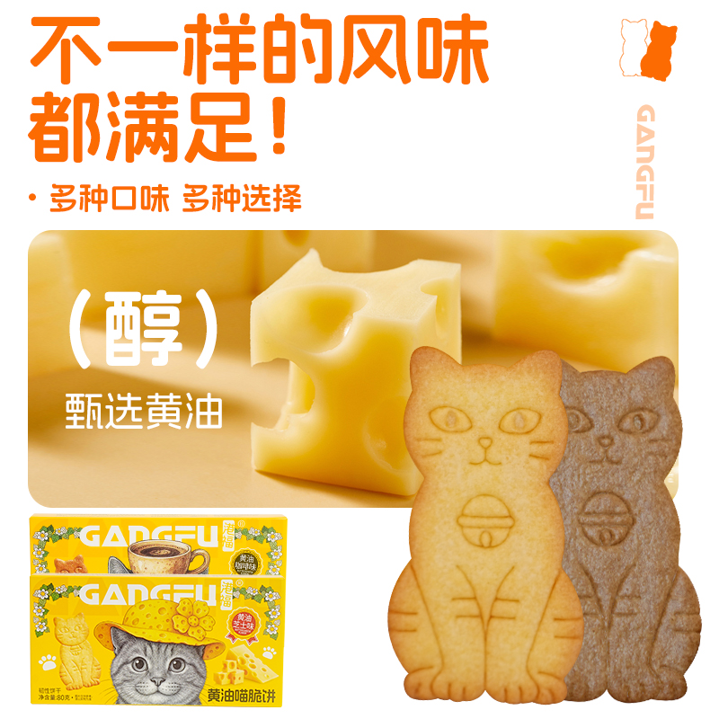 黄油猫酪饼干曲奇薄脆小猫芝士咖啡牛奶早餐解馋休闲零食小吃食品