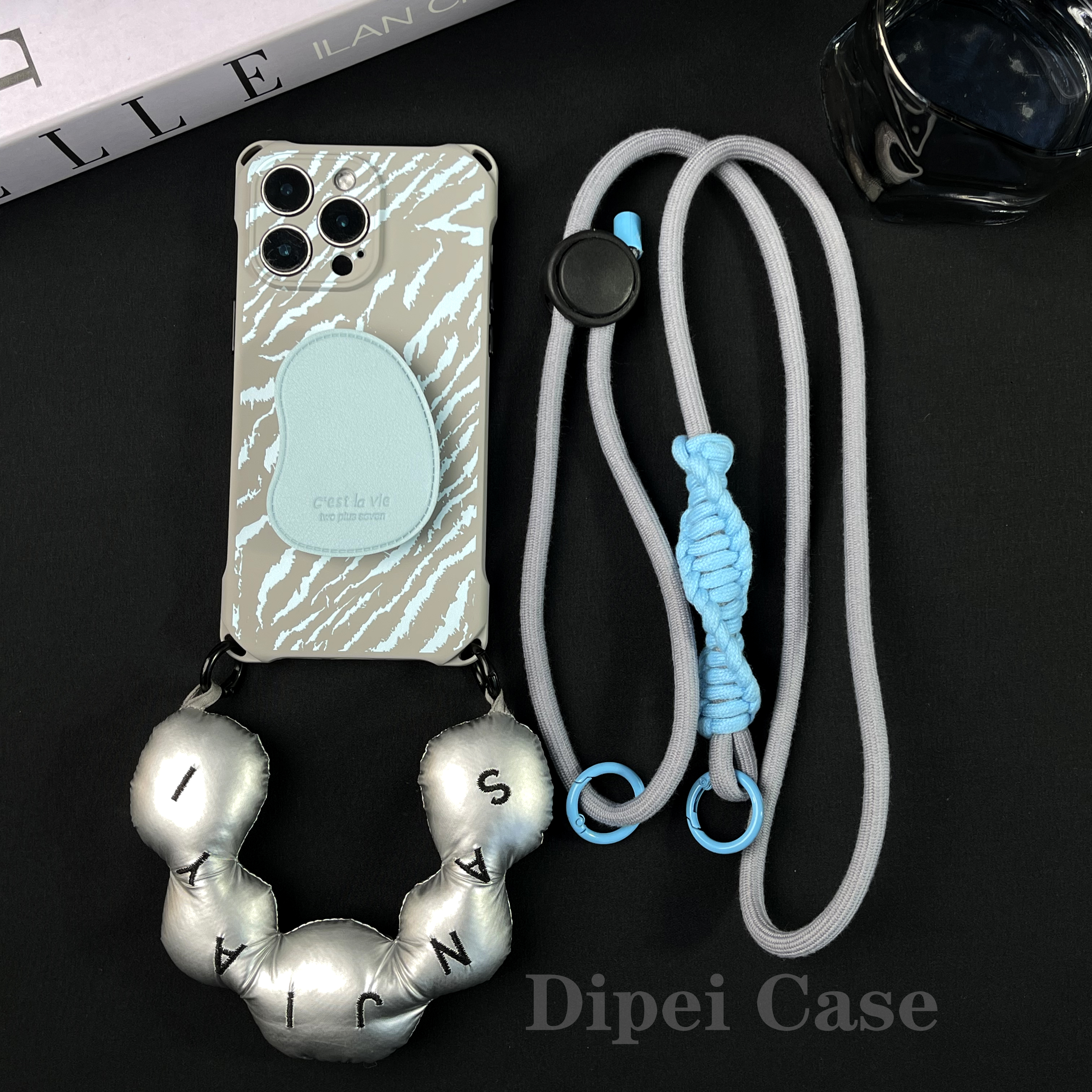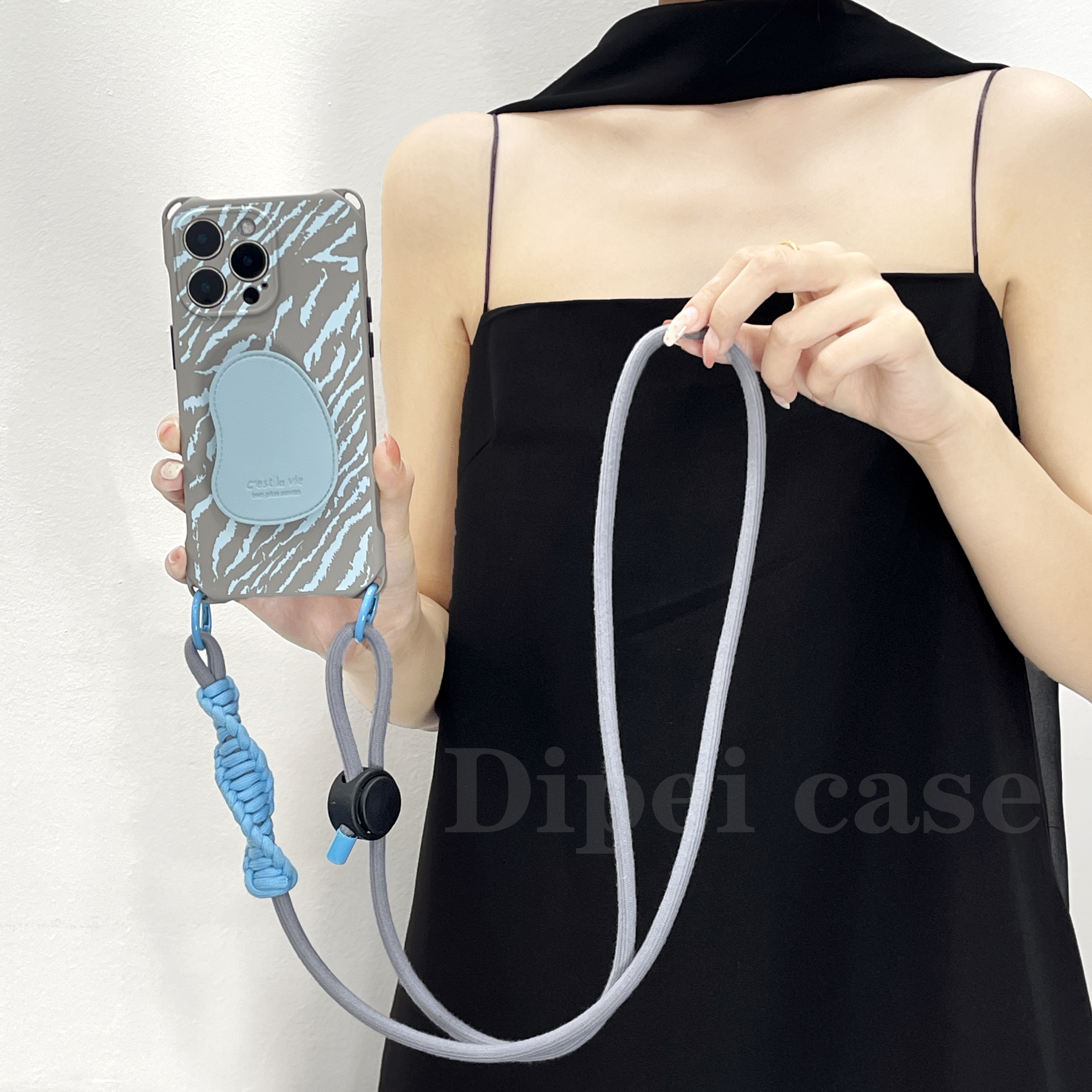 时尚小众带支架手机壳挂绳四角开孔斜挎适用于苹果iPhone17promax/16/13华为mate70pro背带80新款60小米15/14