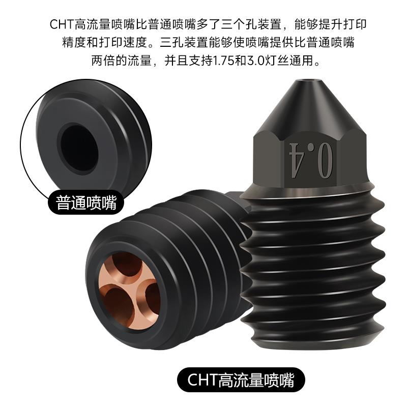 升级拓X1C/P1P竹子热端喷嘴组件大流量CHT克隆三孔硬化钢黄铜喷头