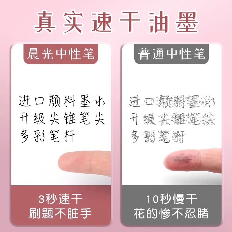 晨光中性笔按动高颜值K35少女心st刷题笔0.5mm黑色速干签字笔考试碳素笔女生款水性笔按压式圆珠笔好看的笔