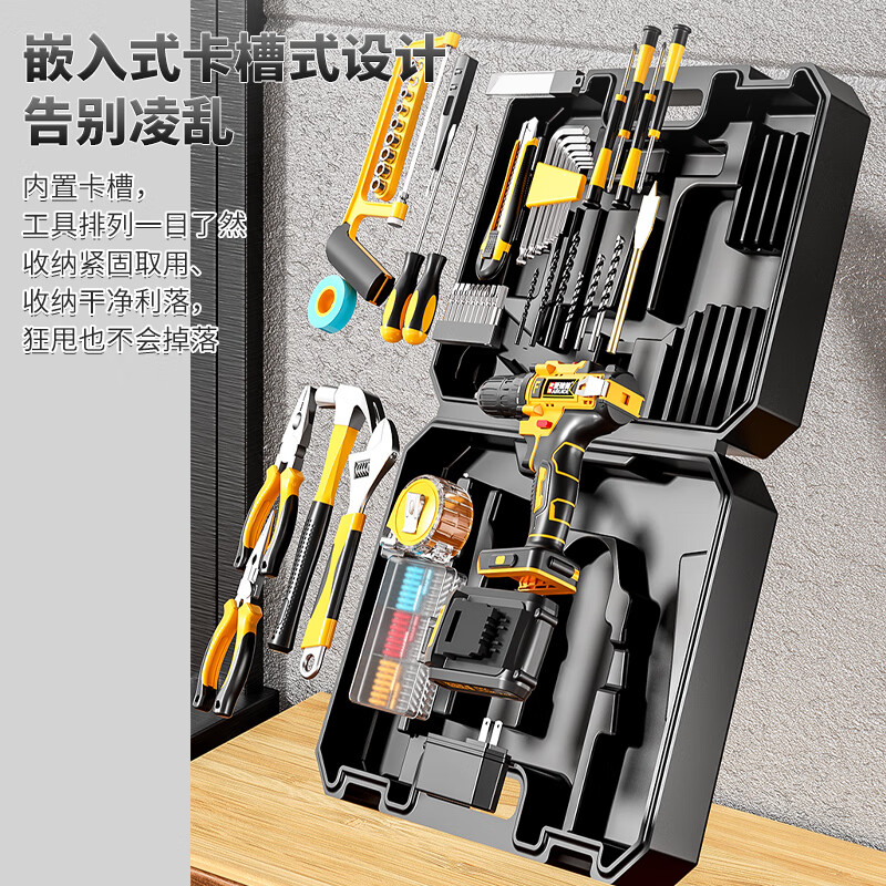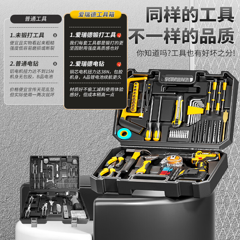 爱瑞德手电钻家用工具箱全套维修工具套装五金锂电电动螺丝刀工具