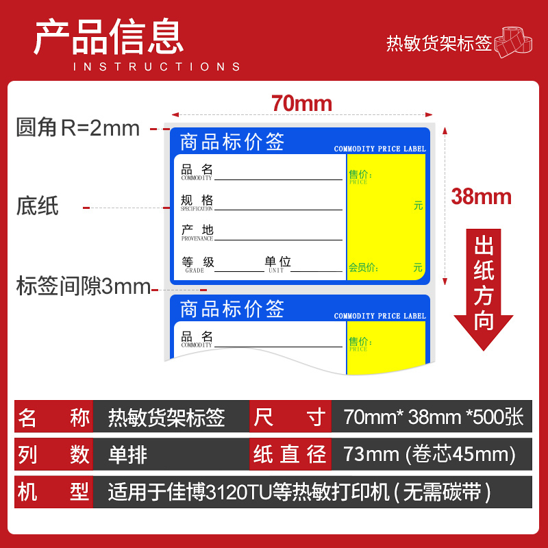标价签热敏不干胶纸70*38超市药店烟草便利店商品货架价格标价牌合成标签贴纸条码打印纸彩色防水手写可定制