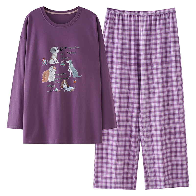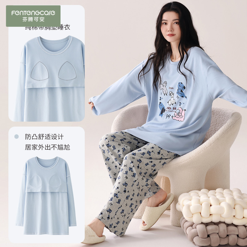 芬腾可安睡衣女士春秋纯棉长袖2025新款带胸垫大码女款家居服套装