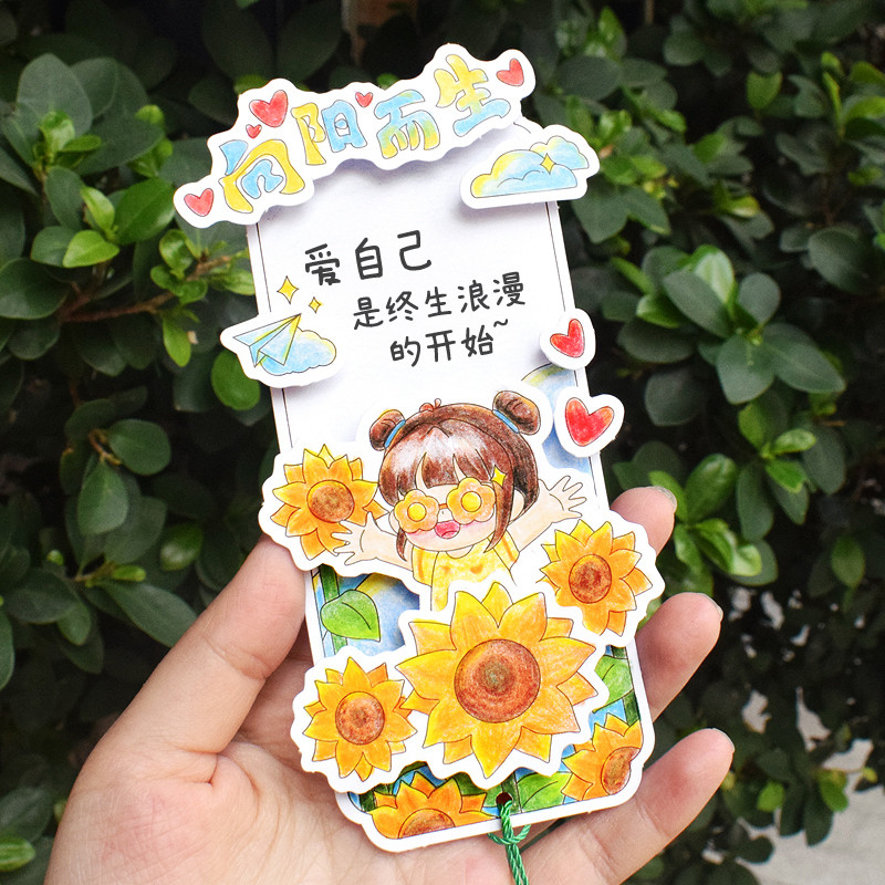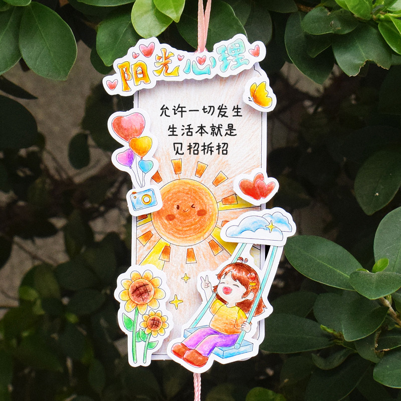 心有阳光填色书签纸小学生关爱心理健康向阳而生主题课堂手工作业