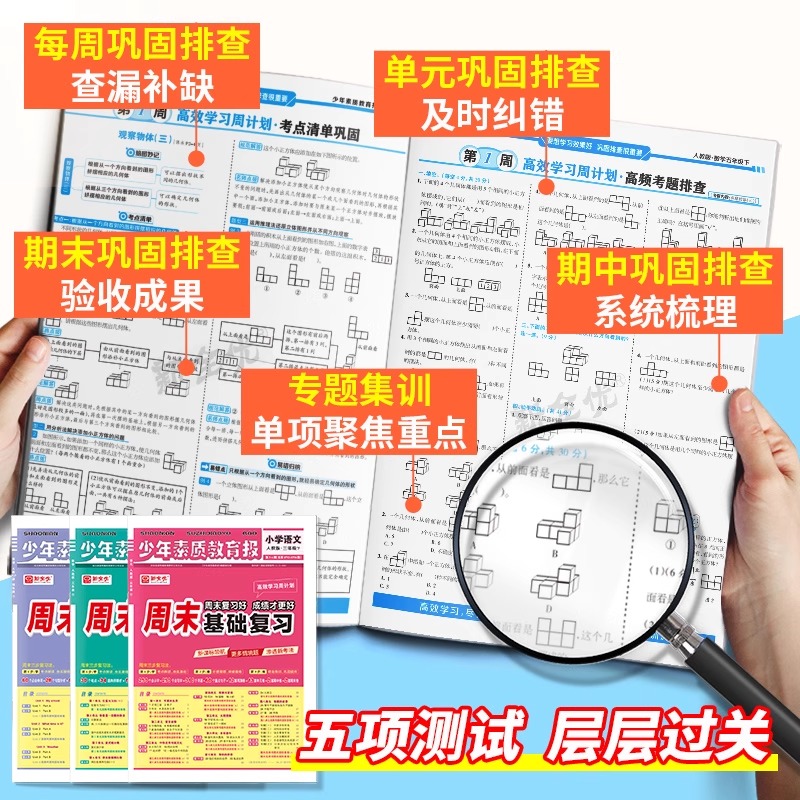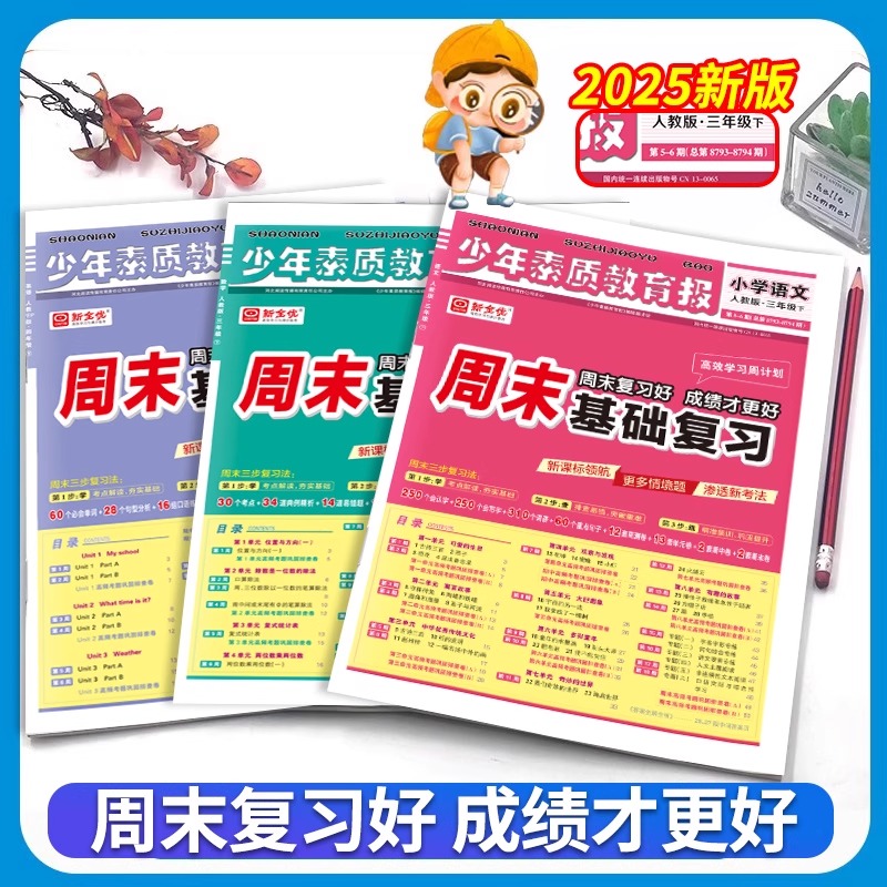 2025秋周末基础复习高效学习周计划一二三四五六上册语文数学英语冀教同步单元测试卷少年素质教育报每周训练练习青岛版苏教版高频