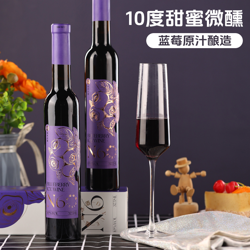 帝月野生蓝莓冰酒N6低度女士微醺甜型酒国产果酒发酵酒六支礼盒装