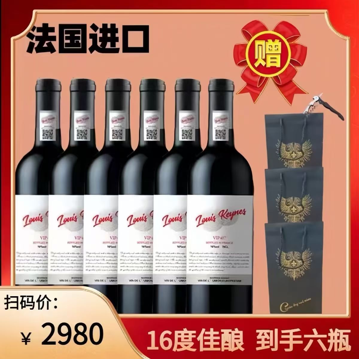 法国原瓶 进口16度法国进口干红葡萄酒*6支彩箱整箱 正品进口407