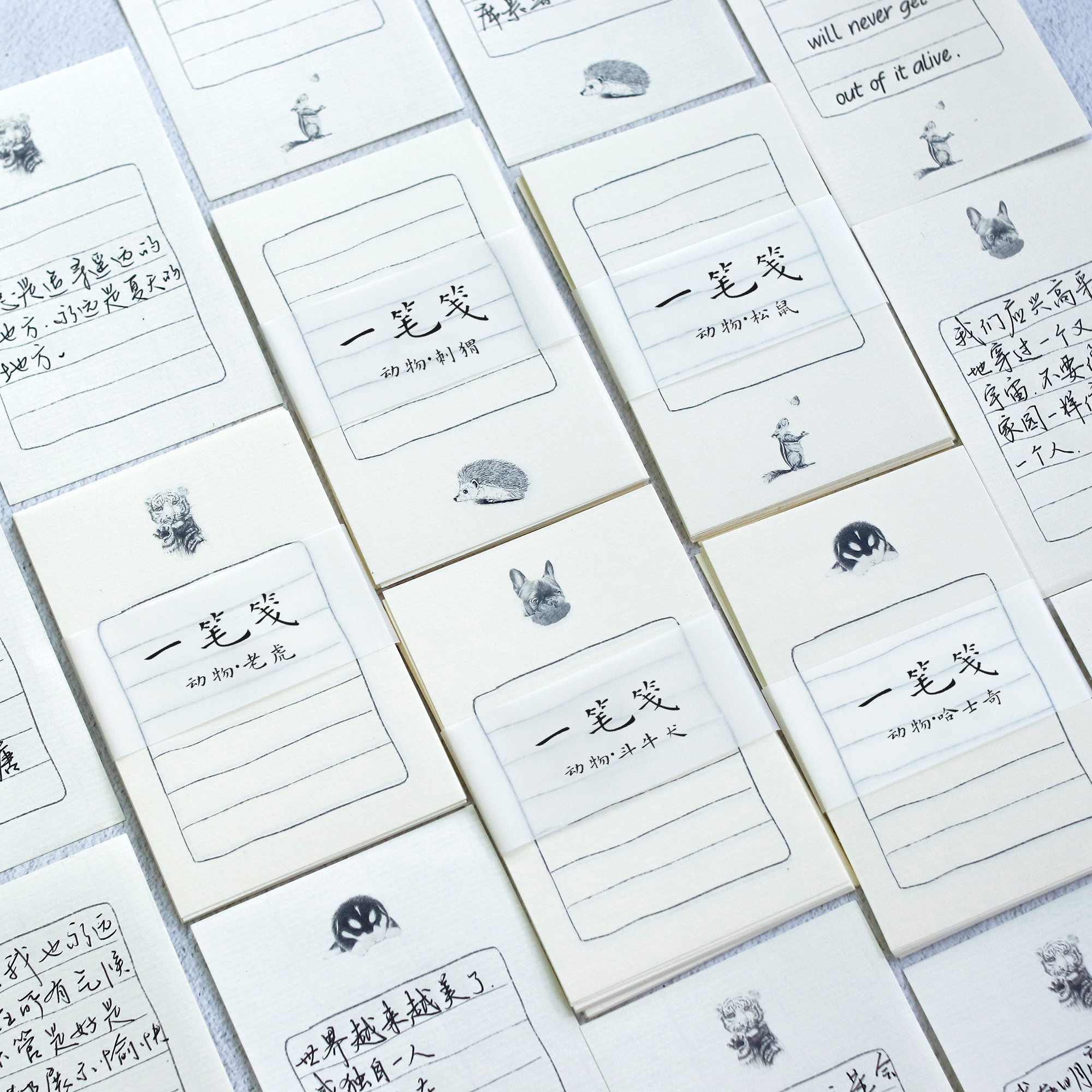 一起练字迷你一笔笺动物笺便签纸书签哈士奇刺猬松鼠七行横格信纸