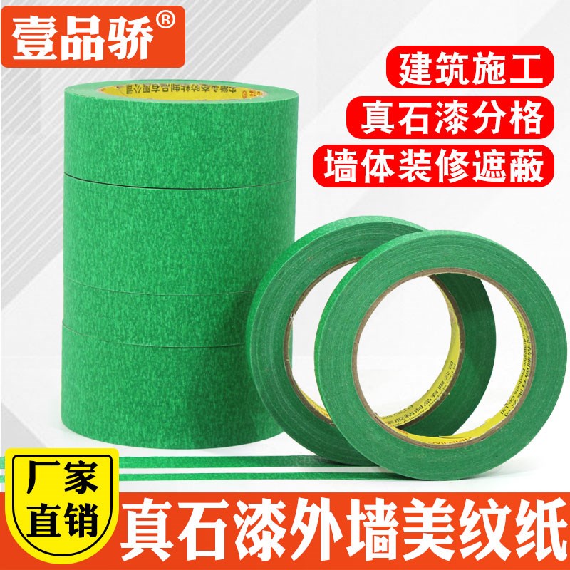 绿色美纹纸胶带高粘外墙专用真石漆分格线胶带R分色纸胶带耐高温