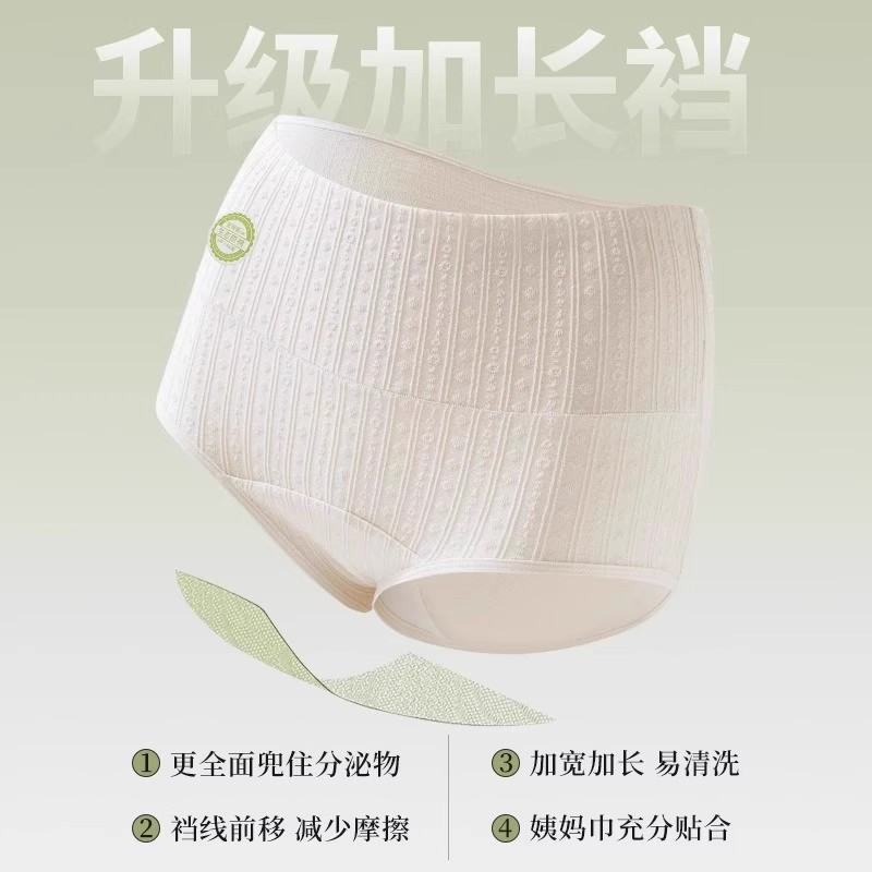草本初色妇炎洁内裤女2025新款中高腰加长纯棉底裆无痕抗菌三角裤