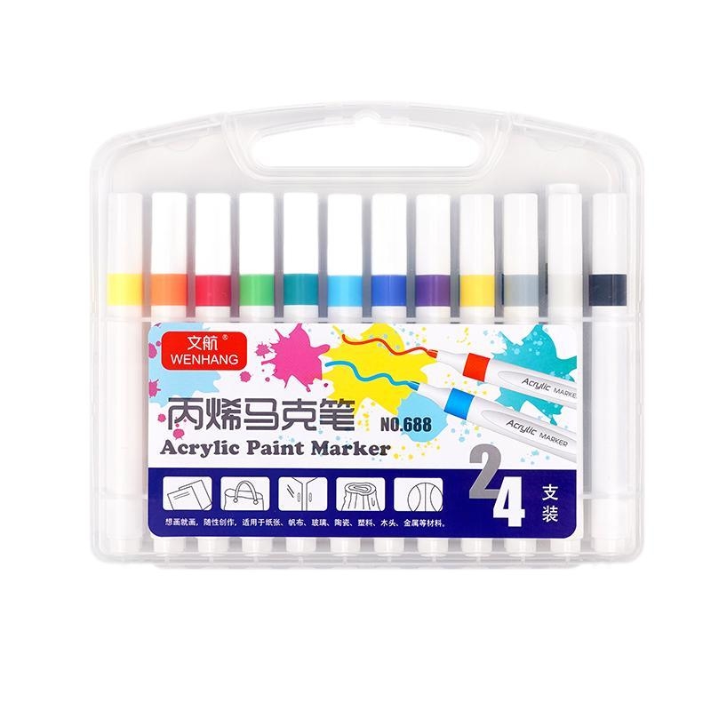 丙烯马克笔儿童咕卡涂鸦笔无毒丙烯颜料防水不掉色画笔12色24色36色水彩笔DIY手绘画手机壳衣服可水洗可洗