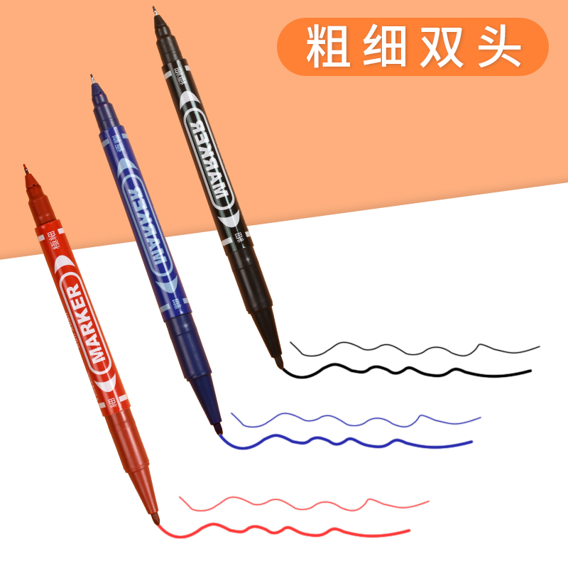 勾线笔小双头记号笔学生用美术手绘儿童绘画描边黑色油性细勾边笔
