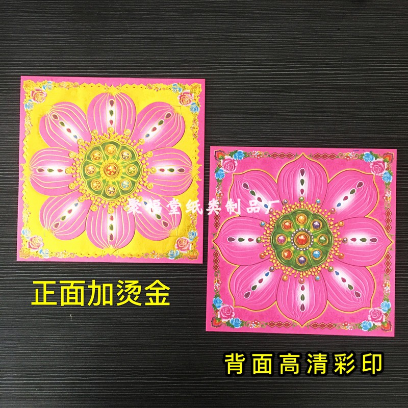 400张 双面玫红色琉璃莲花金 正方形手工折叠纸加厚19x19cm有烫金