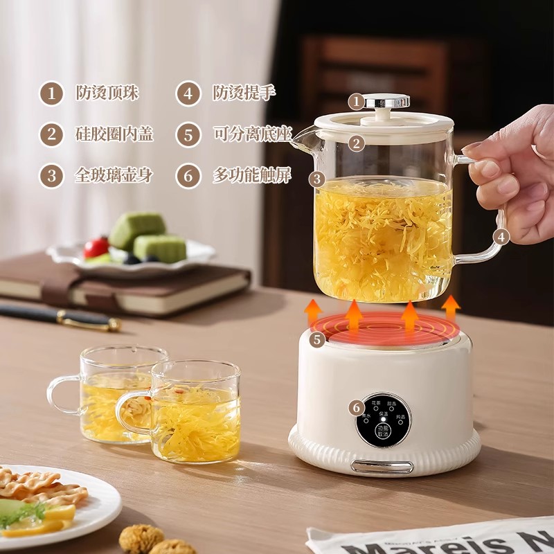 OIDIRE偶点全玻璃养生壶纯玻璃煮茶小型办公室烧水壶恒温电热水壶