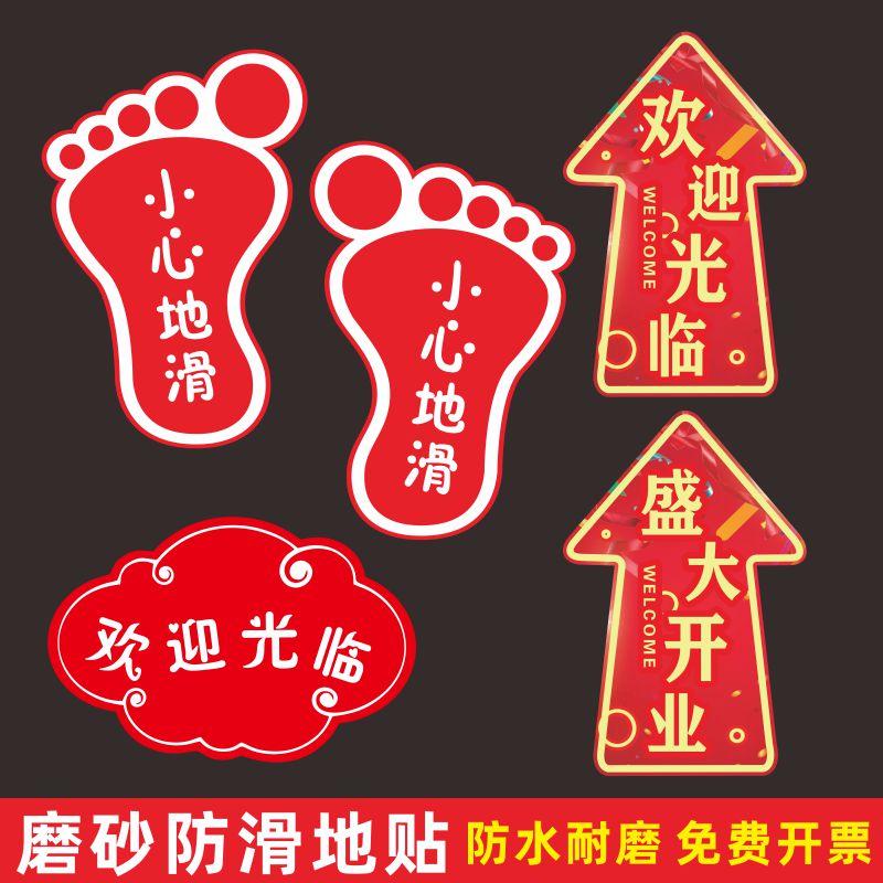 小心台阶地贴卡通可爱指示地贴欢迎光临当心地滑云朵箭头地贴商场超市脚印广告温馨提示牌安全警示标识贴