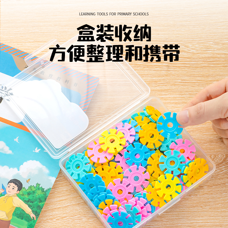 银河星一年级数学雪花片数学课本同步小学生专用100片盒装便携易收纳幼儿园100以内加减法拼搭动物图形学具