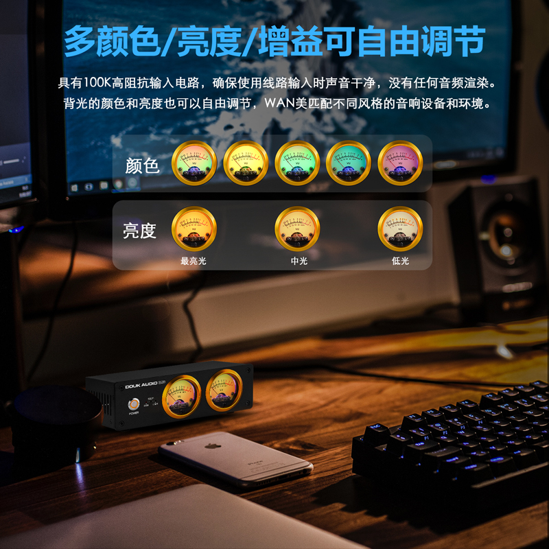 DOUK AUDIO VU22麦克风拾音双模拟VU表铝合金声控电平音乐节奏灯