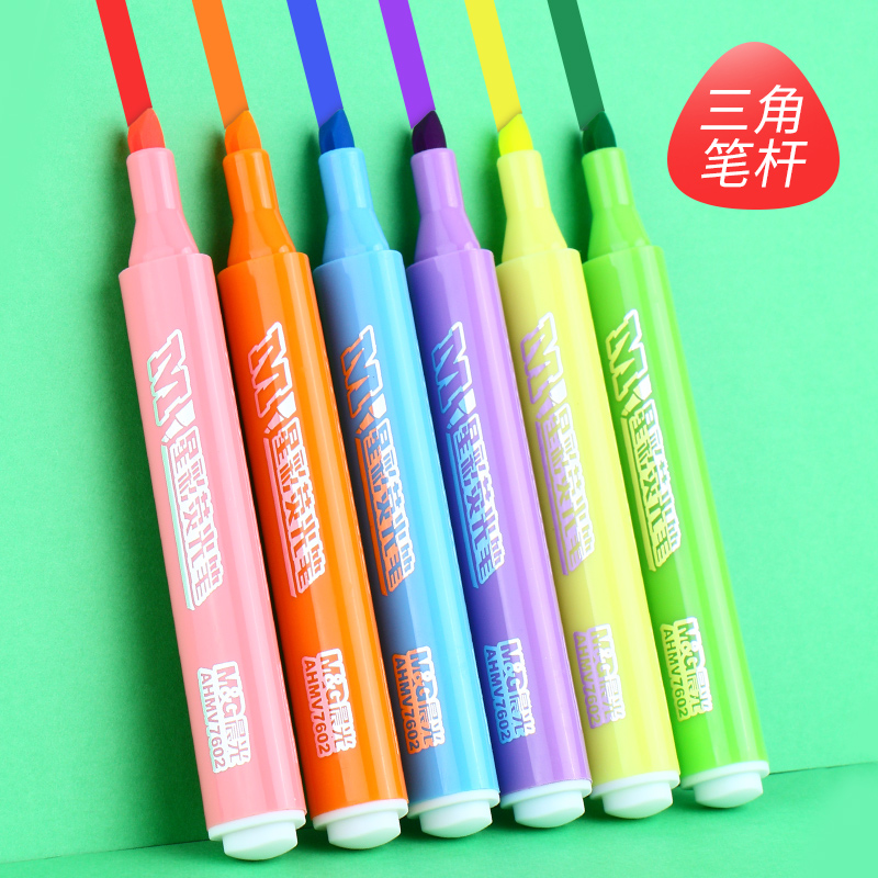 三年二班护眼荧光笔高颜值荧光标记笔学生用多色记号笔彩色划重点手帐手账笔做笔记本马卡龙淡色萤光笔银光笔