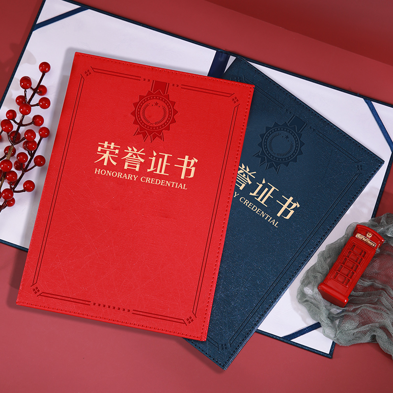 二折高档仿皮签约本聘书证书封面烫金A4荣誉证书奖状外壳定制创意logo定做内芯打印证书封套授权书收藏证书