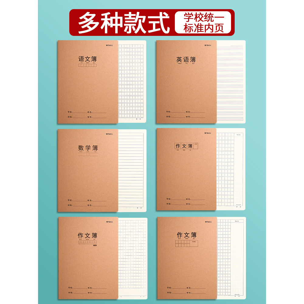晨光双行本A5作业大本子16k初中生高中生双行簿笔记小学生一年级二年级四五六三年级牛皮纸练习加厚文具批发