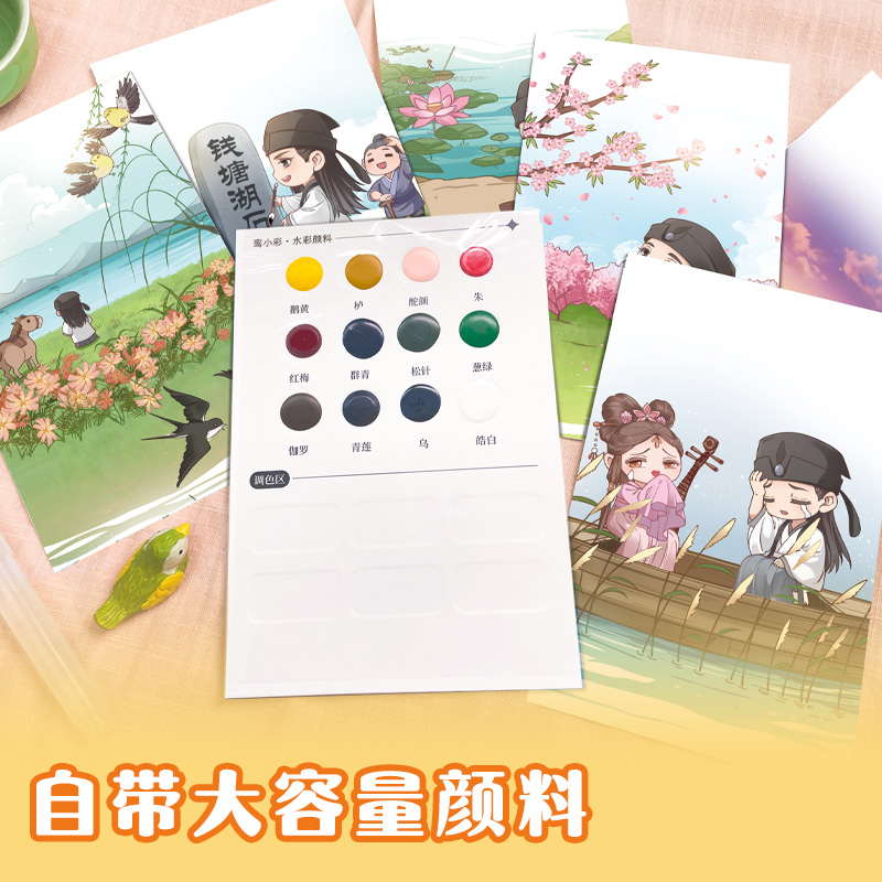 【清仓直降】飞乐鸟国风古诗词水彩线稿涂色本儿童水彩颜料套装