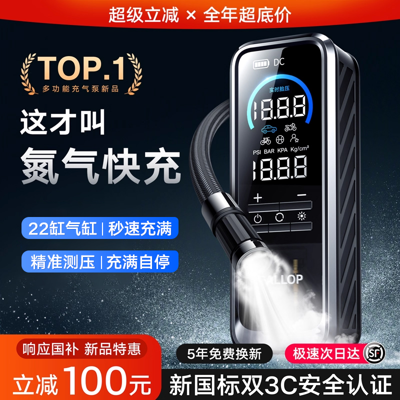 车载充气泵无线便携式高压打气泵汽车轮胎电动打气筒车用带测胎压