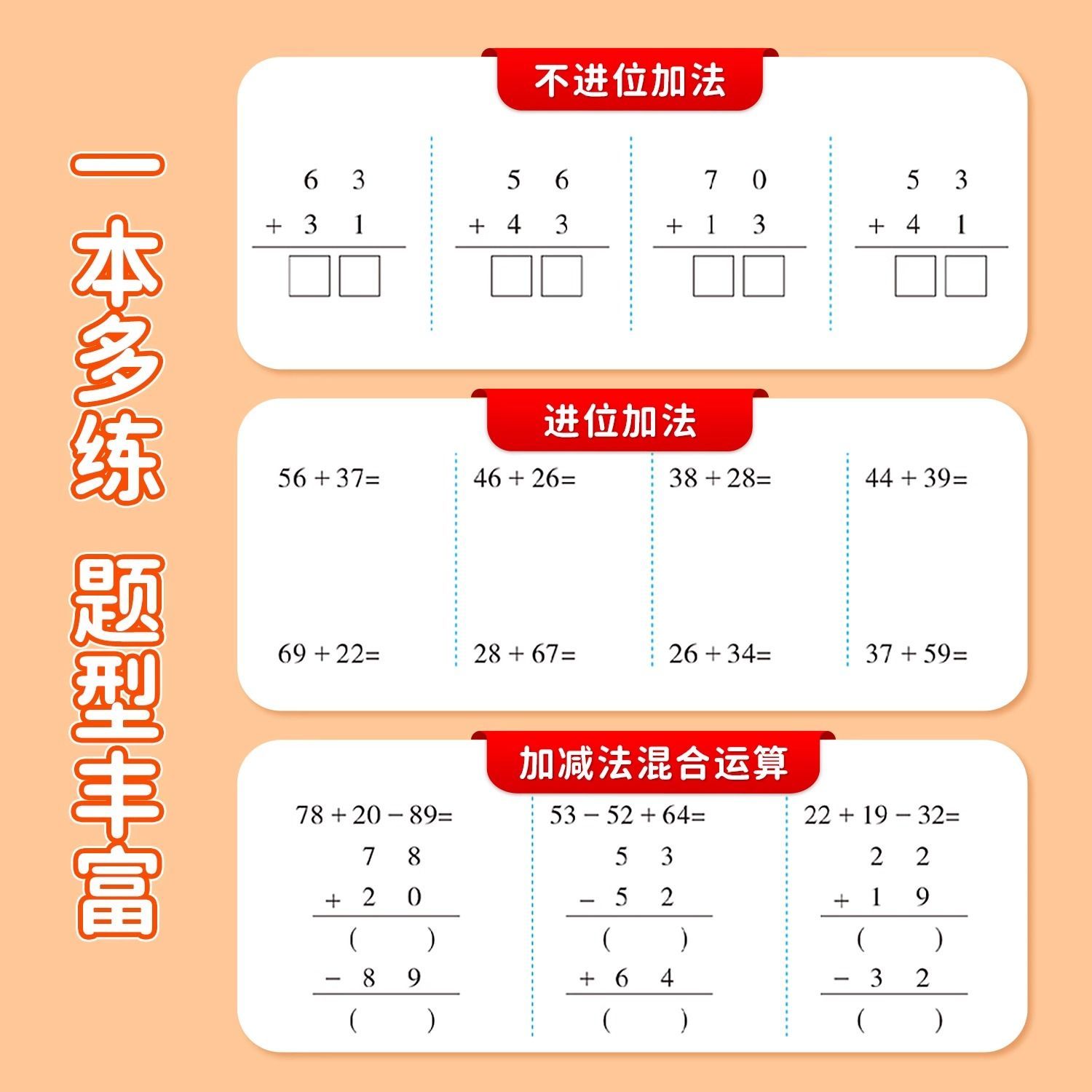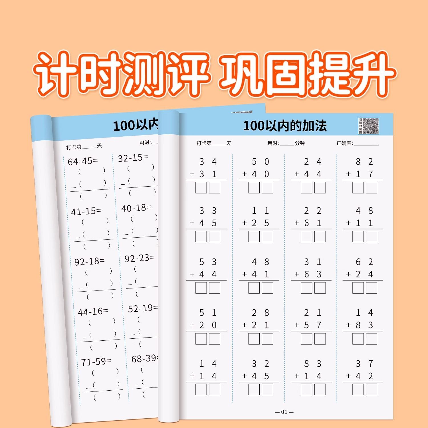 一年级上下册100以内加减法口算天天练加减法横式竖式专项练习本口算题卡每天一练一百以内进位退位加减法混合运算练习