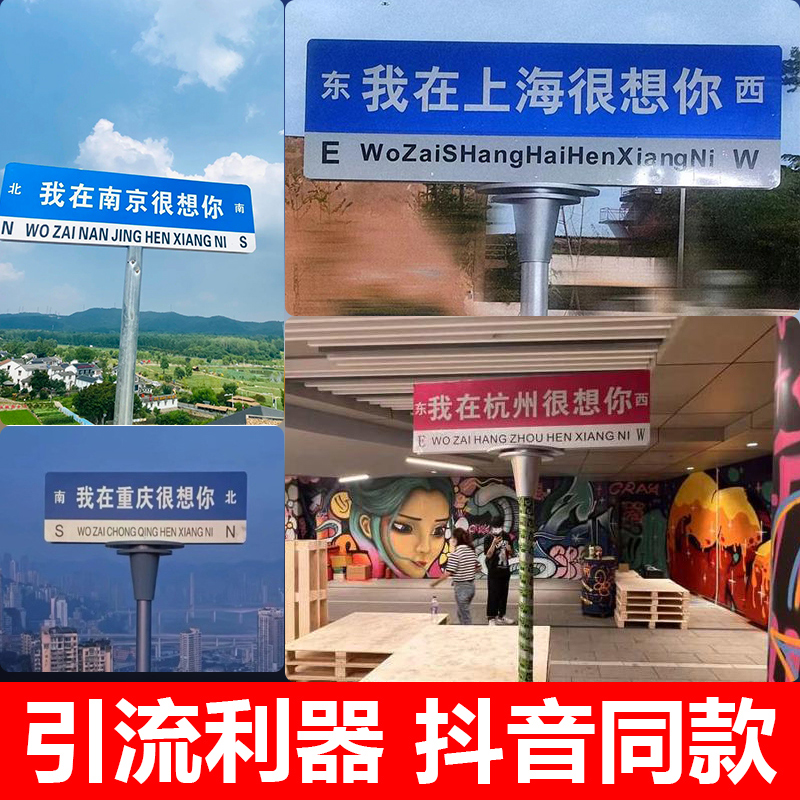 路牌道路指示牌T型立柱公路名方向提示牌我在杭州很想你的风还是吹到了上海重庆宁波南京网红道路指示标志牌