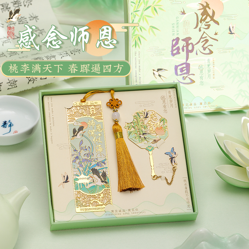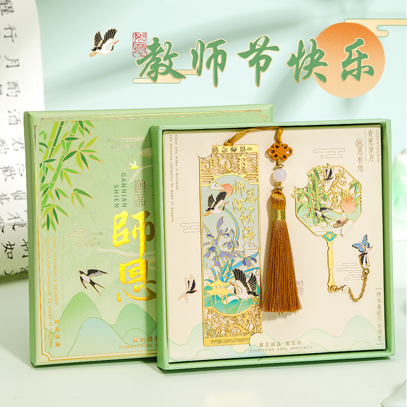 谢师恩!小槑同学教师节金属书签复古高颜值古风精致插画古典中国风实用教师节礼物送女老师高档礼盒2025新款