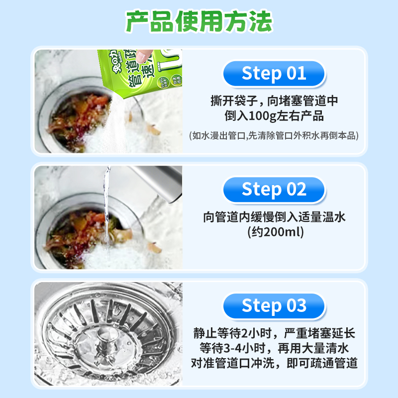 管道疏通剂泡泡粉强力溶解厨房马桶堵塞通下水道去飞虫溶解剂油污