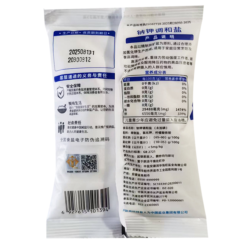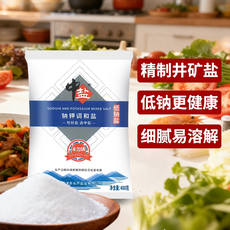 中盐无碘钠钾调和盐低钠盐家用食用盐低钠钾盐低钠食盐无碘盐