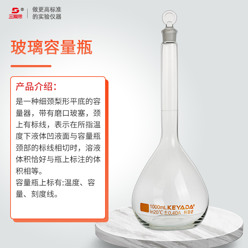 科亚达玻璃容量瓶5/10/50/500/1000/2000ml棕色具塞容量瓶A级茄形瓶定容磨口具塞化学实验教学仪器定量摇瓶