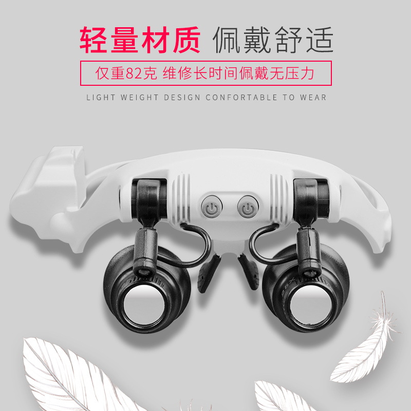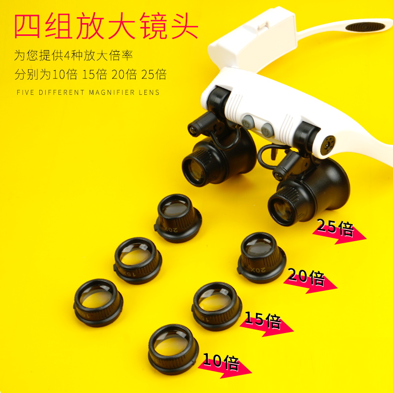 25倍头戴式维修放大镜带灯电子维修钟表维修手工雕刻等
