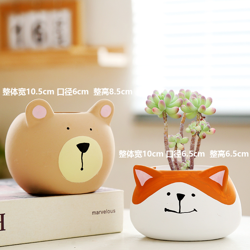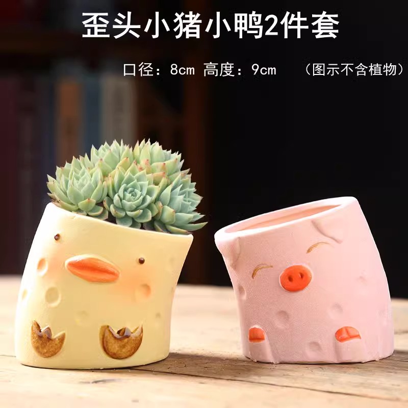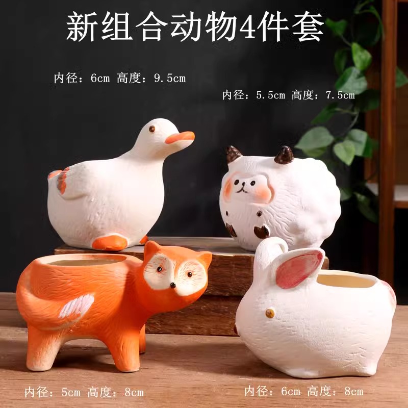 卡通动物多肉花盆陶瓷特价清仓精致小盆组合可爱多肉专用盆长方形